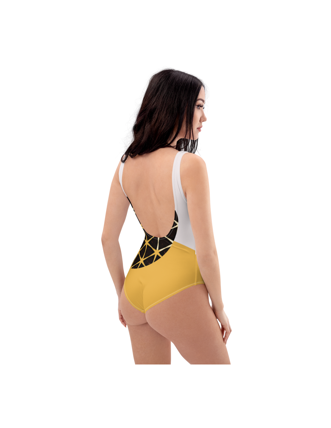This classy one-piece swimsuit will bring out your best features. Enjoy the smooth fabric and the flattering design.